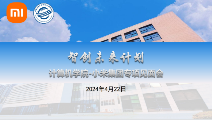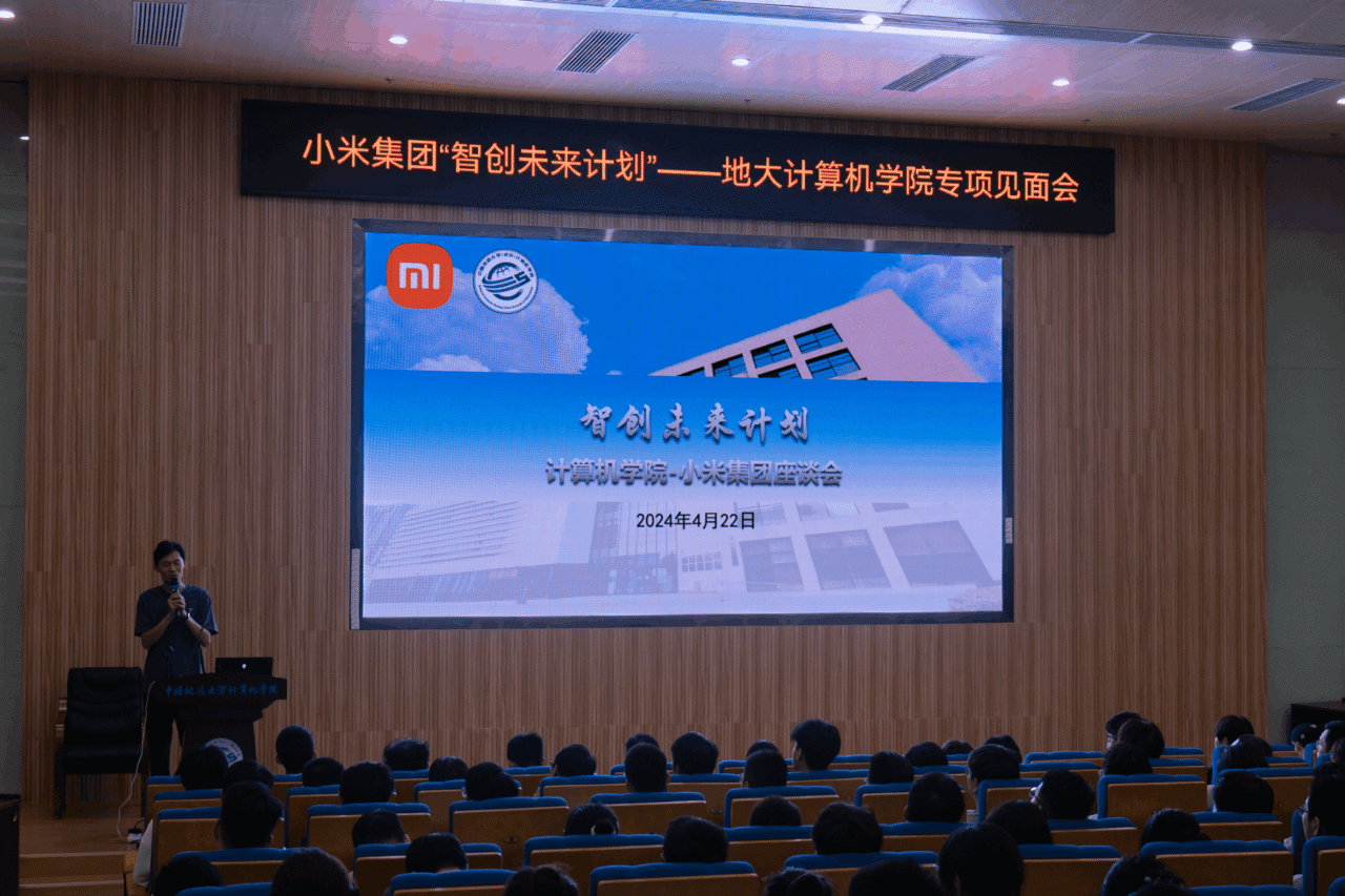2024年4月22日,十大买球官方网站联合小米集团在学院126报告厅开展“智创未来计划”专项见面会。小米集团技术委武汉研发中心总经理梁荣堂、小米集团技术委武汉研发中心副总经理周代国、小米集团技术委武汉研发中心副总经理王军伟、小米集团技术委武汉研发中心小爱算法团队负责人张帆一行四人参加,学院2021级本科生,2022级研究生400余人参加,专项见面会由十大买球官方网站辅导员谭文博主持。