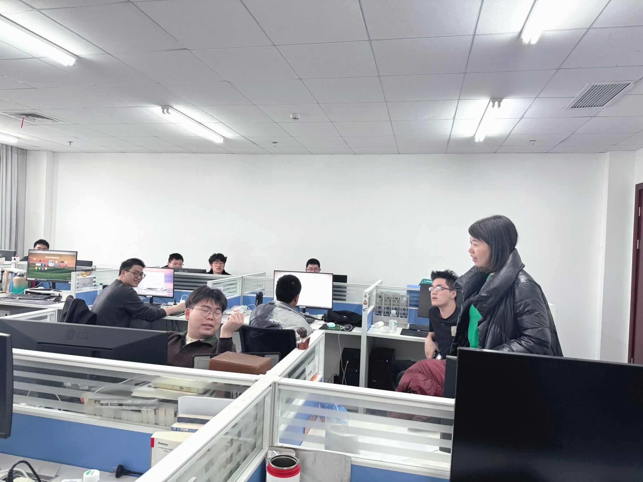 林小艳与同学们亲切交流,关心同学们寒假期间的学习、生活情况,细致询问同学们的学业进展、学期目标和科研规划、考研及就业等情况,叮嘱同学们注意防寒保暖,提醒同学们严格遵守安全规范,树立防诈骗意识,并殷切督促每位同学尽快调整至最佳状态,以饱满的热情和充沛的精力,迎接新学期。