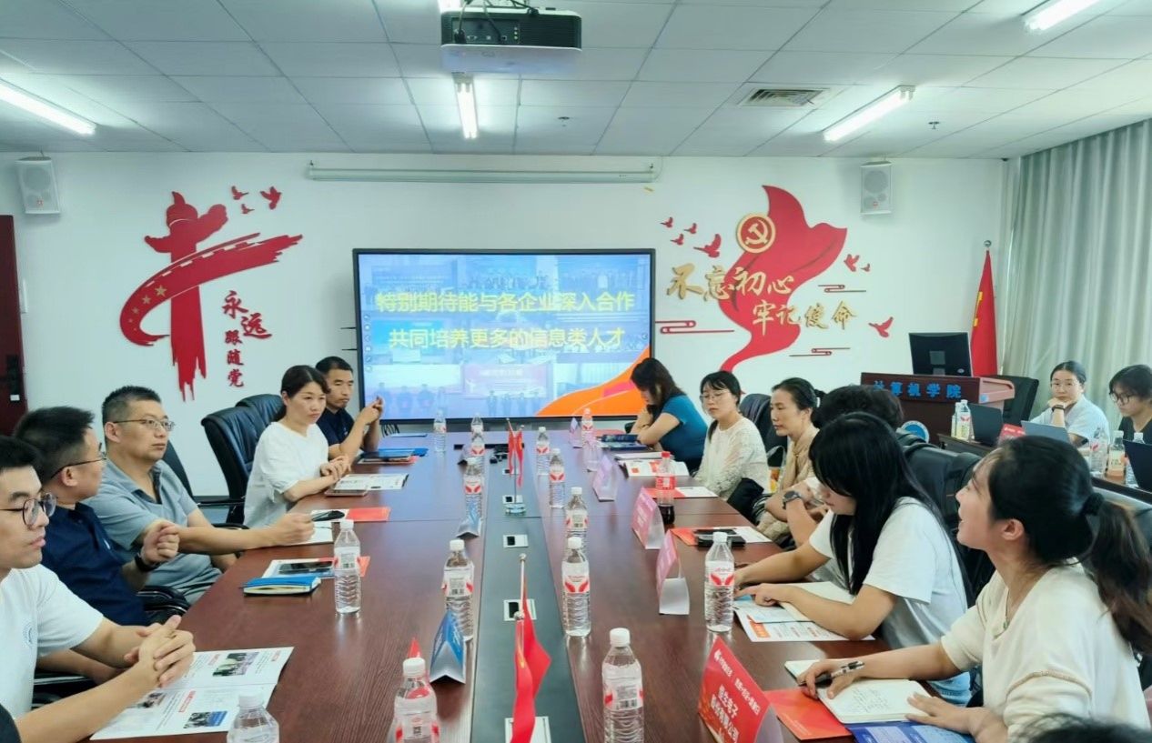 洽谈会上,林小艳副书记在发言中介绍了学院的整体情况与学生规模,并重点阐释了学院在“产-学-研”结合方面的探索与实践。她指出,学院始终坚持以校企合作为导向,积极推动学科竞赛和项目合作,形成了资源共享、优势互补的良好格局;同时,通过与头部企业共建联合培养基地、设立企业助学金,持续拓展学生实习实践平台,强化了应用型人才的培养;此外,学院还将党建工作与就业育人深度融合,创新打造“党建+就业”的新模式,以主题党日和共建活动为抓手,为学生成长成才和企业技术攻关注入新动能。她同时从“企业行”“半月谈”“话共建”三个维度展示了学院在校企合作方面的举措和成效,凸显了学院对学生就业的高度重视。