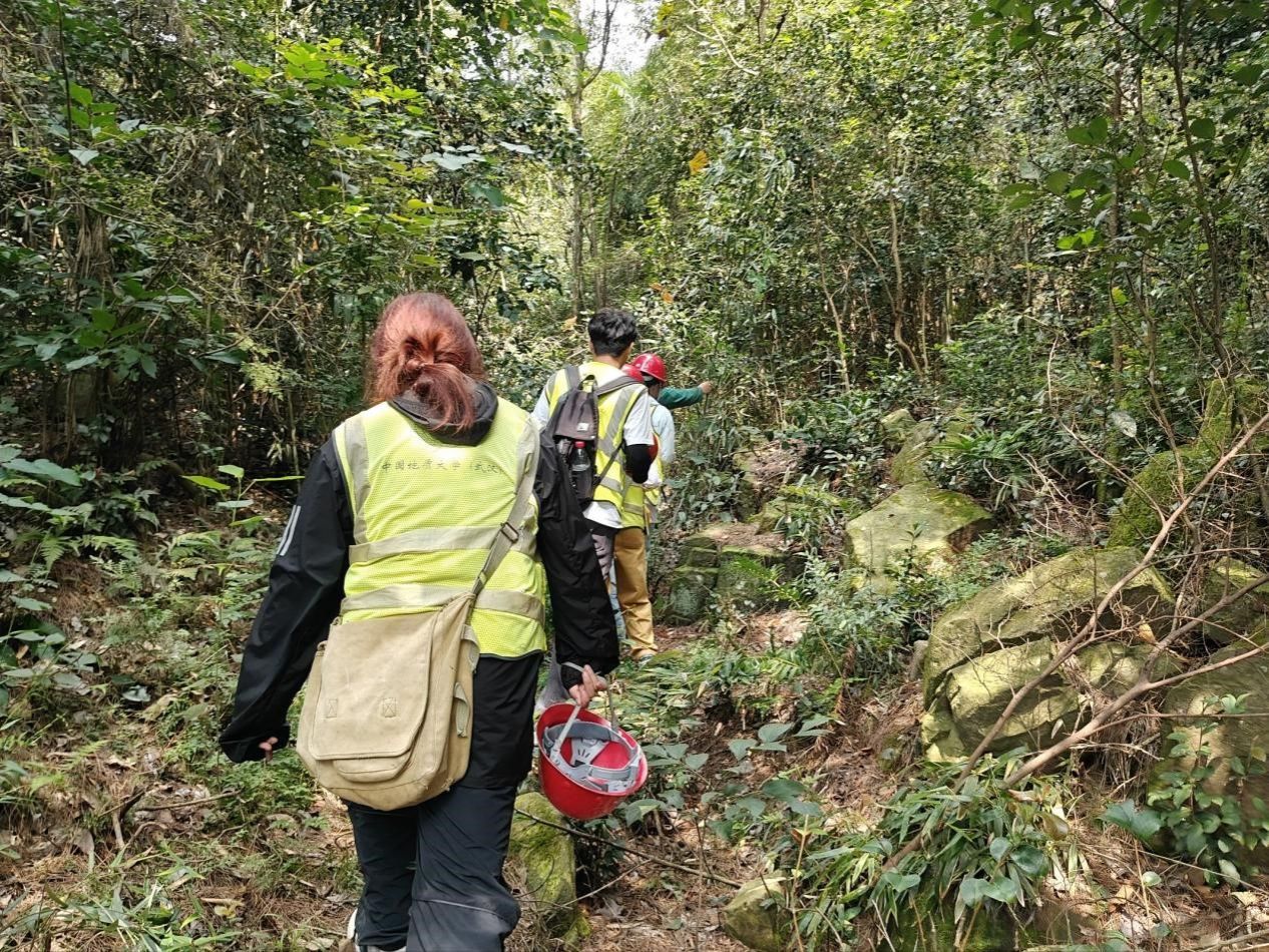 9月19日,雾河填图第三天,路线从雾河到红水坪,核心目标是寻找黄陵岩体花岗岩。沿途大雨阻断了同学们的探索之旅。好在有好心的老乡为同学们提供了避雨和休息的地方,雨停后,重新踏上路途。路途中可见陡山沱组岩层,陡山沱组一二段分界点,陡山沱组与南沱组分界点,连沱组与南沱组分界点。最后,功夫不负有心人,黄陵岩体花岗岩终于出现在同学们眼前!灰白色的岩石在阳光下泛着光,用放大镜一看,能清晰看到肉红色的长石和白色的石英颗粒。同学们围着花岗岩,测量,拍照,小心翼翼地敲下岩样,生怕错过这个“大发现”。往回走时,天已经放晴,阳光透过树叶洒在山路上,同学们虽然脚还是很酸,但心里满是喜悦,雾河的地质拼图终于变得完整了。