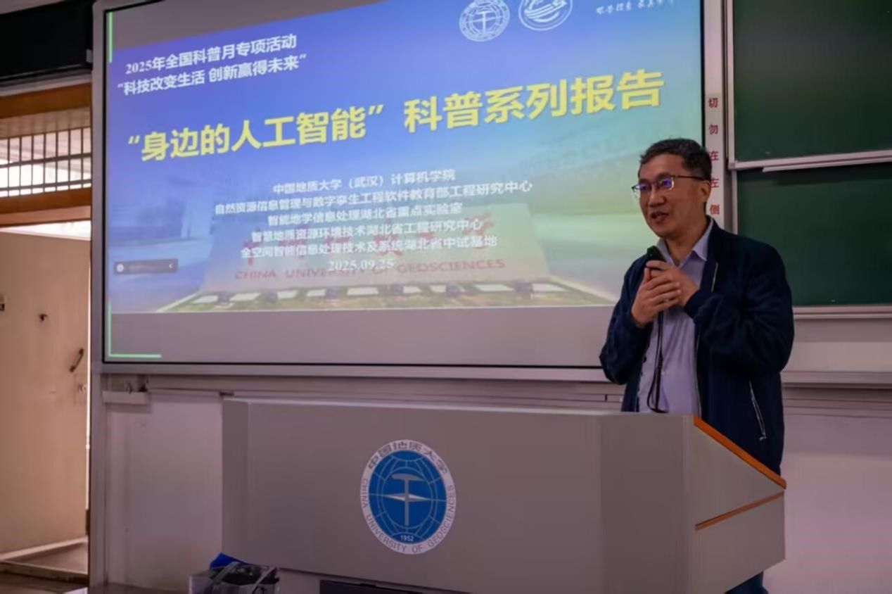 报告会得到了自然资源信息管理与数字孪生工程软件教育部工程研究中心、智能地学信息处理湖北省重点实验室、智慧地质资源环境技术湖北省工程研究中心、全空间智能信息处理技术及系统湖北省中试基地等科研平台的支持,也是十大买球官网建设的武汉市科普基地的活动之一。本次活动成功搭建跨学科交流的高层次平台,拓宽了2025级本科新生在人工智能前沿应用领域的学术视野。生动展示AI在日常生活、教育教学、航天、地质、网络安全等领域的创新实践,有助于推动我校相关学科的交叉融合与创新发展,对提升师生的科学素养和创新能力具有重要意义。