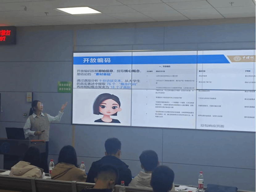 孙琦团队在《“算法懂我”几分真?——大学生对推荐算法的认知、态度及行为策略研究》中,深入剖析算法与青年认知之间的复杂关系;枚文斌团队则从《AI智能体在大学生个性化学习中的需求与前景调查》出发,探讨人工智能在教育中的未来路径;朱乐团队以《最后的避风港,还是温柔的囚笼?论AI陪伴的双重角色》为题,引发对技术与人际关系的深层思考;王子洋团队《从耄耋表情包出发——探究网络流行语背后的青年心态变迁研究》以及贾煜晨团队《探讨当今社会有限资源与认知升级的协同问题》均体现出同学们对社会现象的敏锐洞察与理性分析。