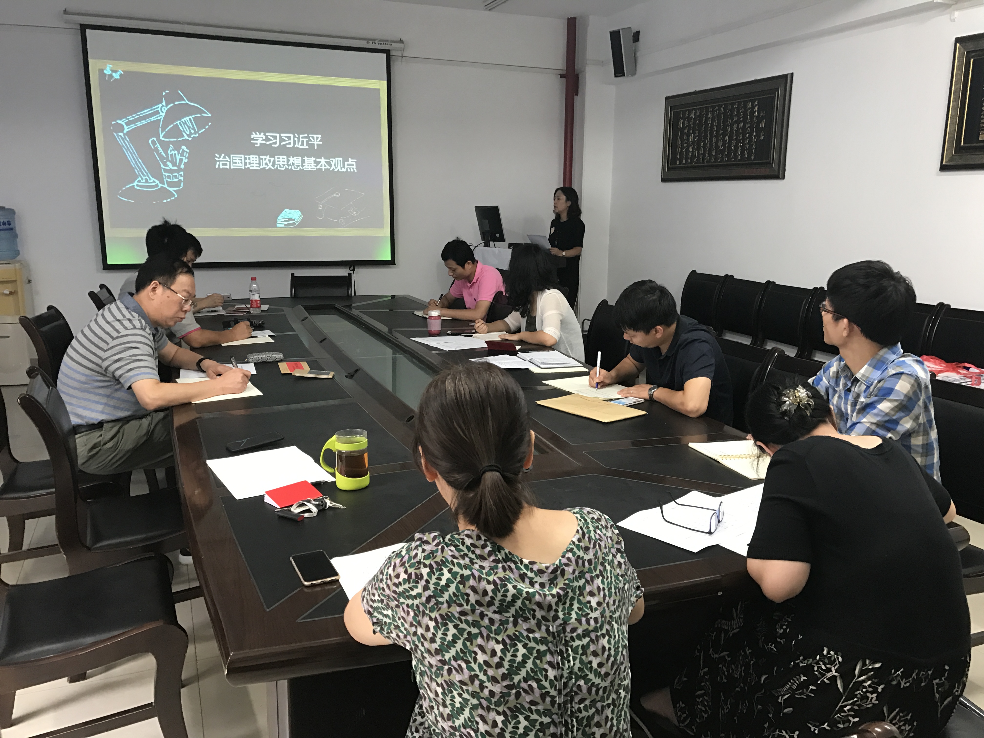 会上院党委副书记孙莉同志给大家上了一堂以《习近平同志治国理政思想基本观点》为主题的党课。党的十八大以来,习近平总书记把马克思主义同中国全面改革发展的新阶段、新形势的具体实际结合起来,形成了一系列治国理政的新理念、新思想和新战略。孙莉同志归纳为1+1,即毫不动摇坚持和发展中国特色社会主义的1条主线,实现中华民族伟大复兴的中国梦的1个梦,及2+2、3+3、4+4……等,并通过此种形式生动、深入、深刻的带领大家对习近平同志治国理政的内涵进行了学习领会。