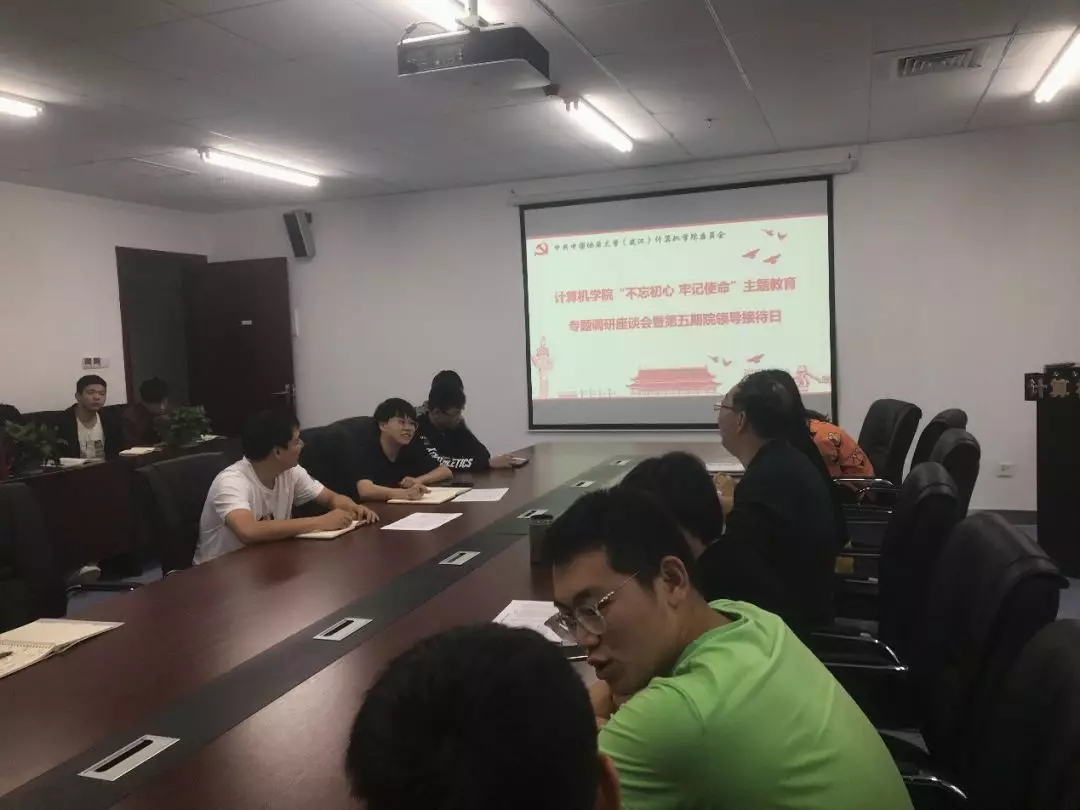 10月11日,十大买球官方网站“不忘初心 牢记使命”主题教育专题调研座谈会暨第五期院领导接待日活动在科教楼309成功举行。十大买球官方网站党委书记吕军教授,党委副书记、纪委书记傅苑,学院人事秘书郭晓兰,团委书记李欢欢,团委副书记汪欣欣出席活动。