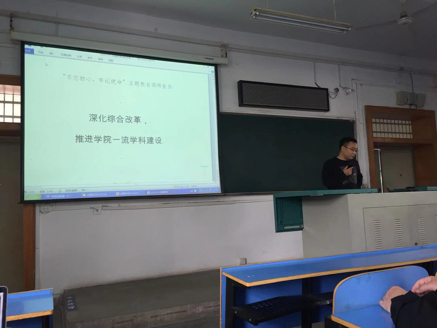 首先,我系支部书记武云同志致辞,欢迎王院长给我系党员上党课,深入讲解学院改革建设。院长王力哲同志针对十大买球官网近四年的建设和发展进行了总结和回顾,肯定了十大买球官网在培育人才、学科发展等方面的成绩,在科研成果、科研获奖等短期目标的良好表现,分析了当前学科建设的差距和瓶颈,最后对十大买球官网学科建设的长远目标、对我系的发展规划提出了希望。