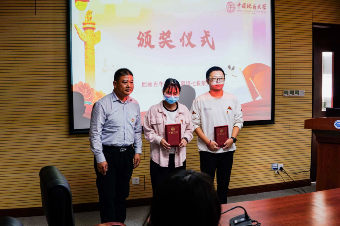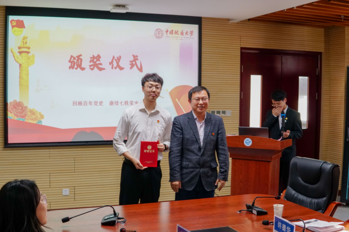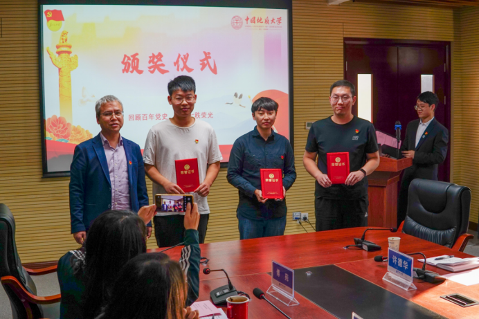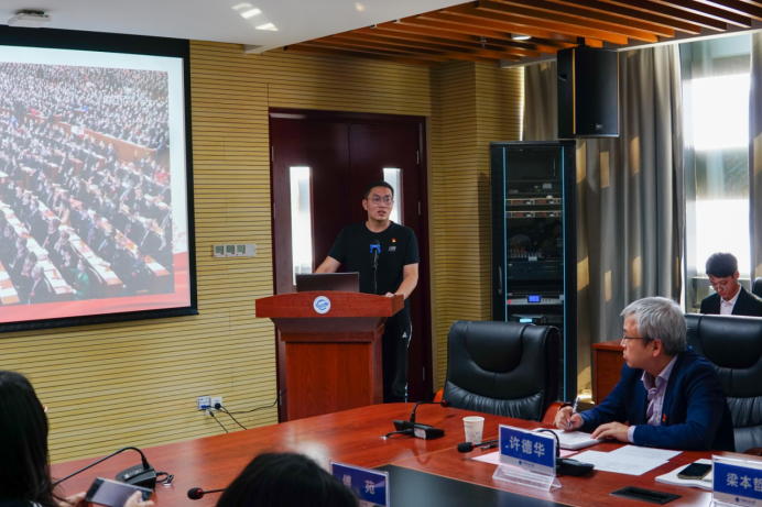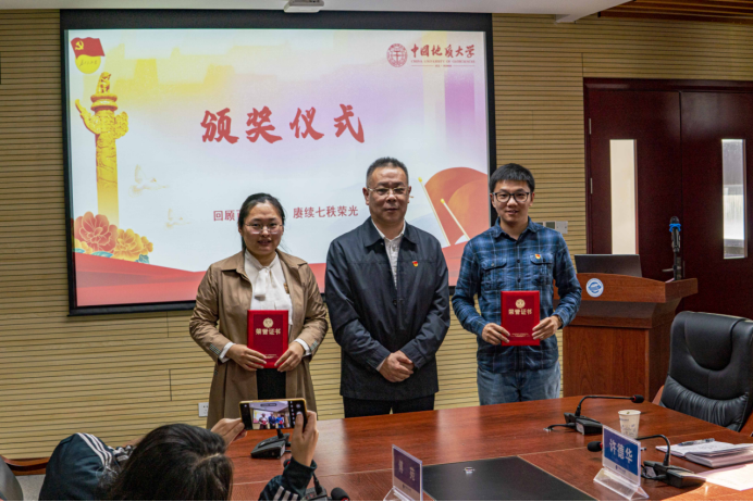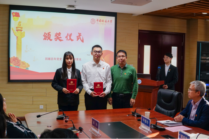 11月2日下午,十大买球官方网站第九届“支部书记讲党史”学生党支部书记组决赛及颁奖仪式在323会议室隆重举行。校党委副书记、纪委书记唐忠阳,校党委组织部正处级专职组职员梁本哲,高等研究院党委书记赵来时,地理与信息工程学院党委书记许德华,校党委组织部副部长何建新,环境学院党委副书记王海锋,未来城校区办公室副主任、党支部书记高莹莹,材料与化学学院党委委员、材料系第二党支部书记马睿应邀出席,十大买球官方网站党委书记李国昌,十大买球官方网站党委副书记、纪委书记傅苑参加活动,教工党支部代表现场观摩。学生党建办公室副主任孔翔担任活动主持。