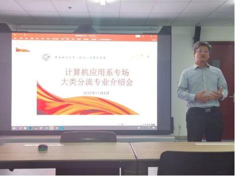 为深入践行“学党史、悟思想、办实事、开新局”要求,结合党史学习教育“我为群众办实事”实际,计算机应用系党支部牢牢把握“以生为本”的原则,结合2022年11月8日下午发布的十大买球官方网站关于2021级计算机大类本科生专业分流通知,计算机应用系党支部于当天晚上7:00在学院235虚拟仿真实验室召开空间信息与数字技术专业答疑见面会,空间信息与数字技术专业学科带头人刘刚教授、系主任张夏林、党支部书记武云、班主任张志庭和李章林,辅导员谭文博参会,2021级本科生报名参会,武云担任主持。