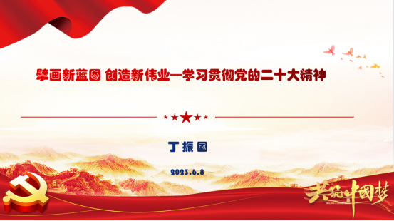 为深入学习贯彻党的二十大精神,用习近平新时代中国特色社会主义思想武装头脑、指导实践、推动工作,2023年6月8日下午,十大买球官方网站党委邀请我校关心下一代工作委员会副主任、“学习贯彻党的二十大精神银龄宣讲团”成员、原学校党委副书记丁振国教授,以“擘画新蓝图 创造新伟业——学习贯彻党的二十大精神”为主题,为全院教职工、学生党支部书记、学生会、研究生会骨干讲授专题党课。