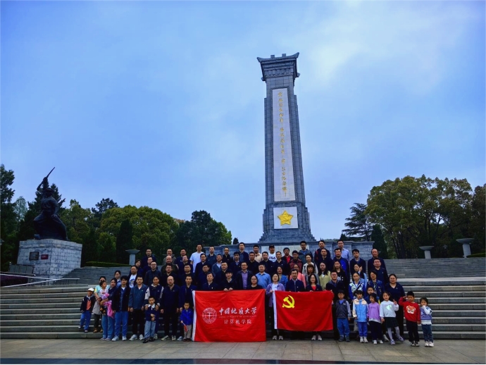 最后,全院教工党员前往黄麻起义和鄂豫皖苏区革命烈士纪念园,整齐列队,向革命烈士敬献花篮、三鞠躬致敬。鲜红的党旗前,全体党员举起右拳,在纪念碑下,面对党旗,在李国昌书记的带领下,重温了入党誓词:“我志愿加入中国共产党……随时准备为党和人民牺牲一切,永不叛党”。