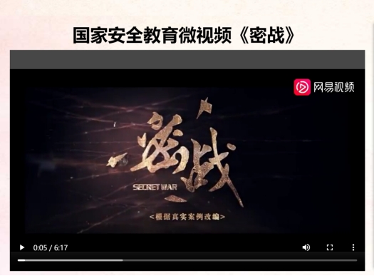 在统计票数期间,全体与会人员一起观看全民国家安全教育日活动——国家安全教育微视频。