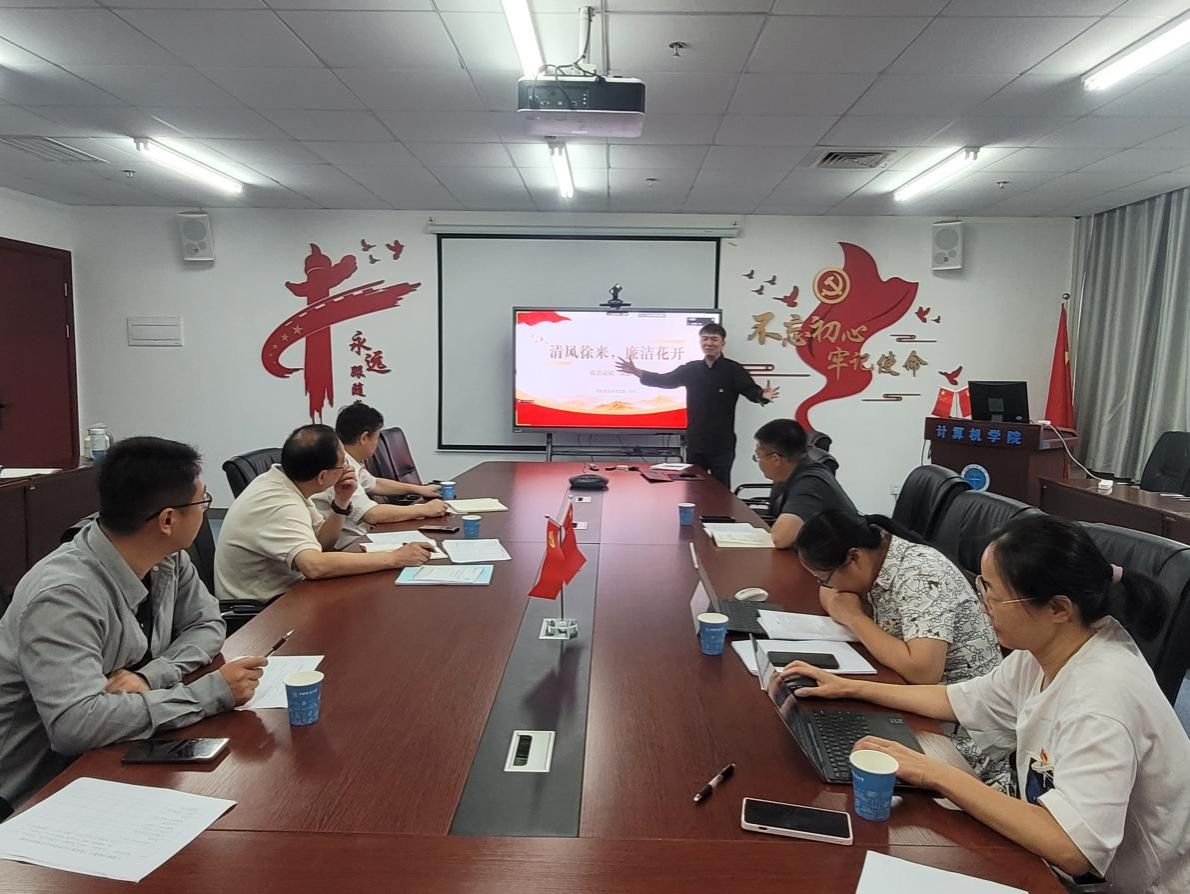 计算机科学与技术系党支部书记吴亦奇以《新中国成立以来30年来的反腐倡廉历史》为题,介绍了从新中国成立之初时期、社会主义建设发展曲折发展阶段、文化大革命拨乱反正阶段三个时期进行的反腐倡廉历史及经验。