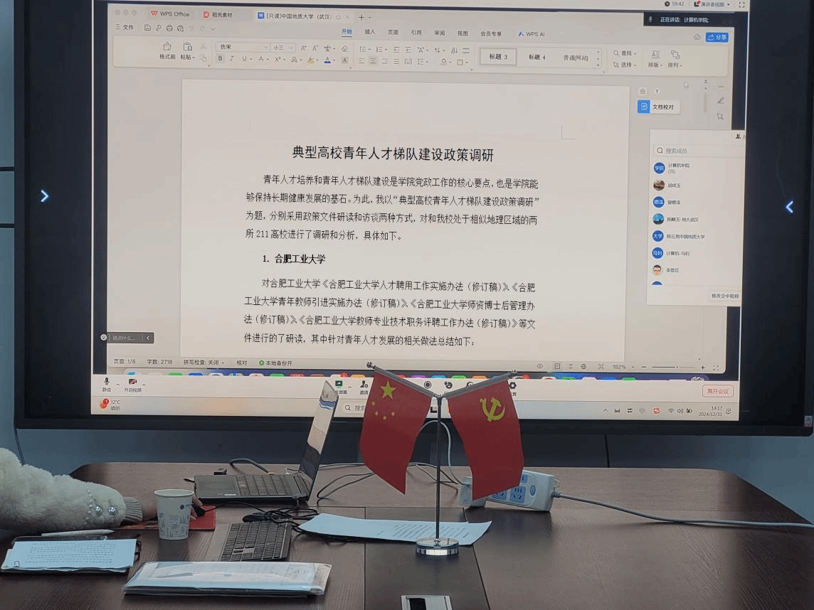党委委员陈麒玉以“典型高校青年人才梯队建设政策”为题,分享了合肥工业大学和福州大学两所高校的青年人才引育做法,并结合学院实际提出工作建议。