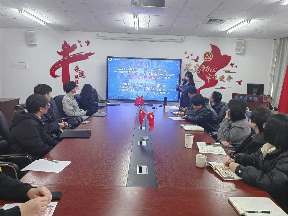 学院团委组织部、学生会、全媒体中心、志愿者协会、学生党建办公室、研究生团学组织负责人分别从工作职责、工作成效、现有不足及未来规划等方面汇报了部门工作。