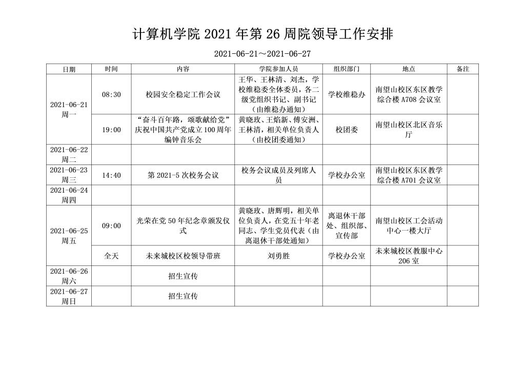 一周安排(第26周,2021-06-21~2021-06-27)