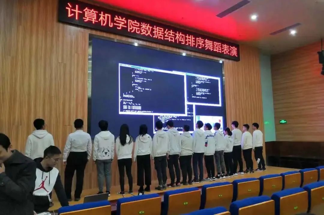 除了在办公室谈心谈话,宿舍、课堂、操场都能经常见到他与学生在一起的身影。每周“三必访一请教”是他对自己的基本工作要求,访早操、访课堂、访宿舍,并常常与任课老师交流沟通了解同学们的学习情况,及时发现问题并予以解决。如,当他发现同学们学习“数据结构”这门课比较吃力时,他便协助任课老师组织同学们编排算法排序舞蹈,让同学们在舞蹈中学习代码的奥秘。