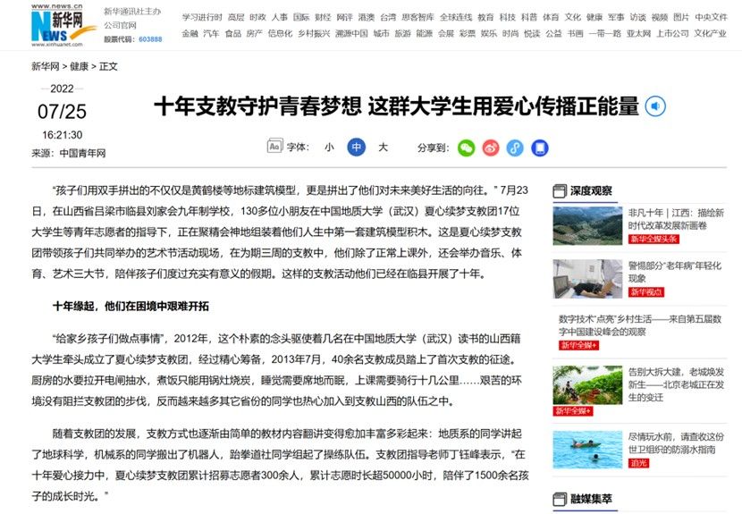 图8 团队事迹被新华网报道