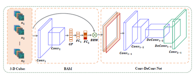 针对高光谱图像的光谱维度高和波段冗余的问题,蔡之华教授课题组提出一系列有效的波段选择和特征提取方法,探索不同波段之间的相互作用,使数据具有更强表达能力,从而有助于提高地物识别的效果。为了挖掘重要波段的重建能力,提出了基于注意力机制的波段选择方法,利用波段注意力机制自适应学习波段对光谱重建的贡献率,形成一种具有灵活架构且可与任意现有网络耦合的波段学习框架。为了探索波段的结构化信息,提出了基于图卷积自表示的波段选择方法,利用波段的成对关系构造波段图,将图卷积引入到自表示模型,在非欧几里得域中建模。为了图像的全局和局部信息,提出空谱超像素主成分分析法的高光谱图像特征提取方法,利用超像素分割技术获取空间信息并使用主成分分析法生成局部特征表示,最后将全局特征表示和局部特征表示进行有效融合降维。