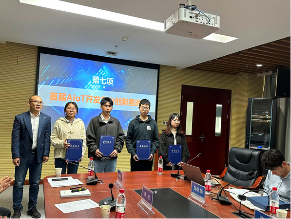 陈虹雨经理介绍了小米实训箱平台。周茂华总经理向十大买球官网四位同学颁发了2022年AloT开发平台创新赛获奖证书。