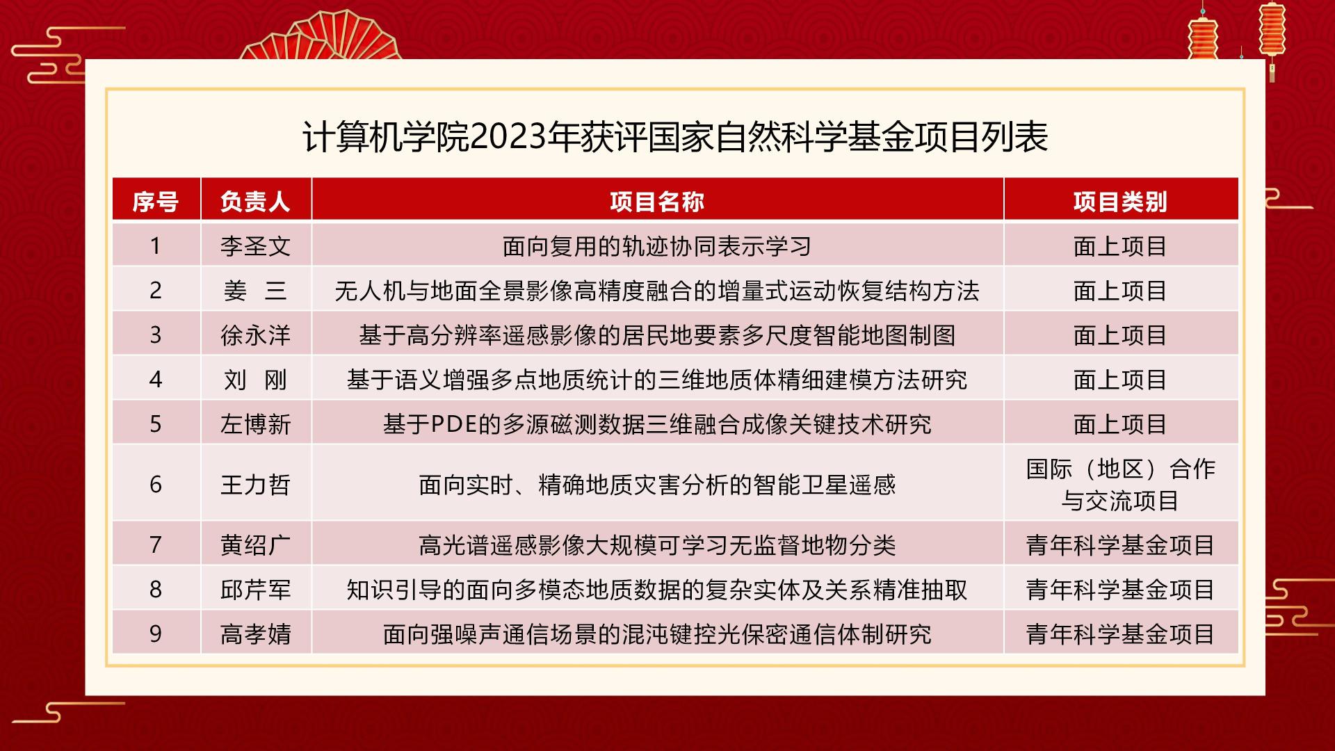 8月24日,国家自然科学基金委员会公布了2023年度自然科学基金集中接收申请项目评审结果,十大买球官方网站共获得9项资助,其中面上项目资助5项、国际合作项目1项、青年项目3项,获批直接经费348万元。